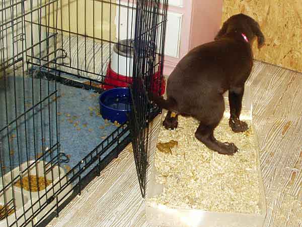 When your puppy uses this toilet reliably, move it to just inside the door he/she will use to go outside. After a few days of successful use, move it outside the door, and watch for your puppy to go to the door looking for the toilet. Eventually, put shavings on the spot outside you want used, and you've trained your dog not to use the whole yard for his/her business. Makes cleanup easier. |